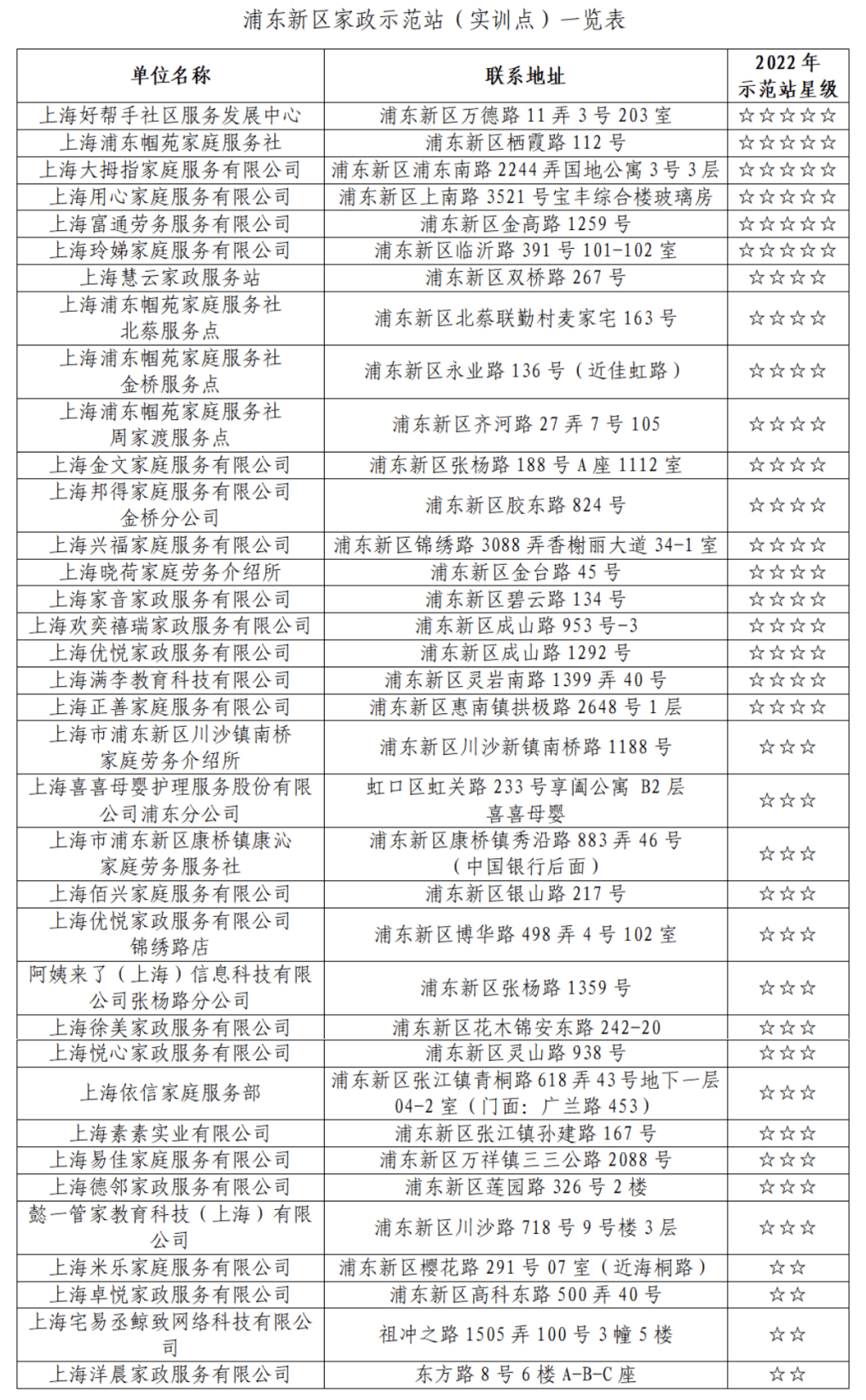 以上四个模块全勤且有就业意向的学员可申请培训证明,凭培训证明前往浦东新区36家家政示范站(实训点)参加实训。
